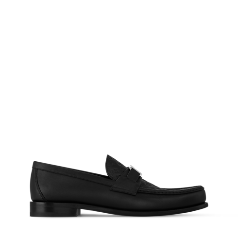 This edition of the timeless Major loafer is crafted from supple calf leather. The hand-stitched vamp, a key feature of this design, combines two House signatures: a debossed Monogram pattern and a silver-toned LV Initials accessory. This model is mounted on a leather and rubber outsole for optimum comfort and wear.
