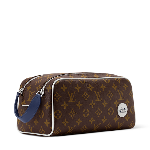 Made from Monogram canvas, this Dopp Kit features a white Louis Vuitton patch as part of the LV Golf collection. A wide double zipper attached to a leather handle offers easy access, making it ideal for grooming essentials. It’s also perfect for keeping small items like a phone or wallet organized and close at hand.