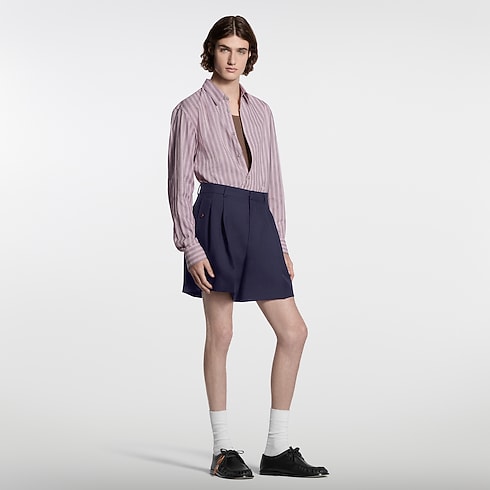 These smart pleated shorts from the Spring-Summer 2026 show are tailored from mohair suiting, lending a preppy accent to a look. Drawing on this season’s Indian inspiration, they are available in a deep purple hue and signed with discreet tone-on-tone embroidery above a rear pocket. A matching double-breasted jacket makes a chic summer suit.