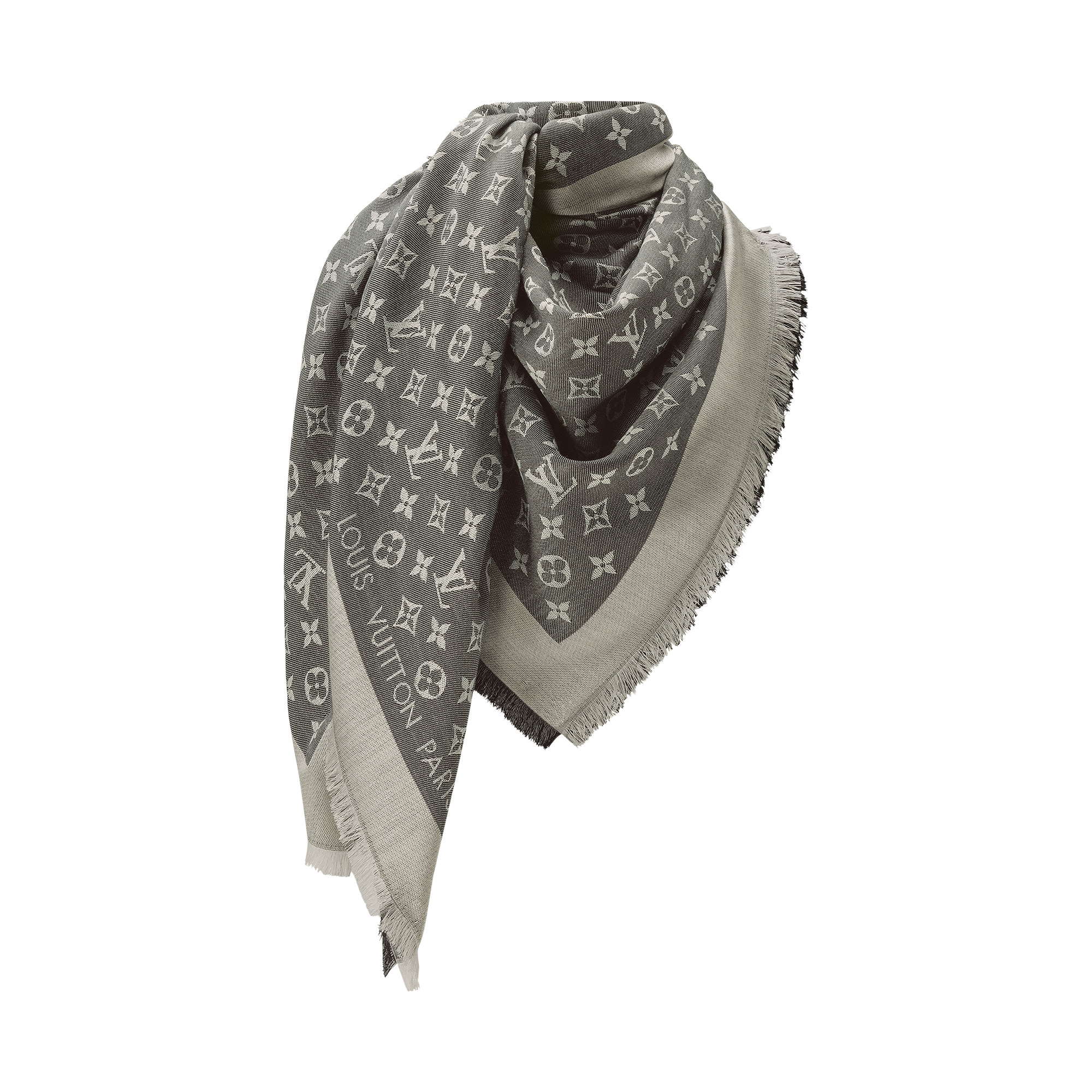 Ideal for everyday use, this luxuriously soft Monogram Denim shawl is subtle and very feminine. Entirely weaven in jacquard, it features the Louis Vuitton signature and the Monogram pattern.