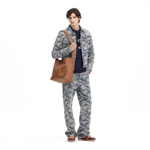 These richly worked denim skate pants take inspiration from the changing weather of the British countryside. A sophisticated Foggy Monogram jacquard adorns the indigo fabric, with bleached-effect signatures interspersed with clouds, whose contrasting stitches create a tapestry-like effect. A VVN-colored leather Damier jacqueron adds a chic finishing touch. Pair with a matching trucker jacket for a graphic set.