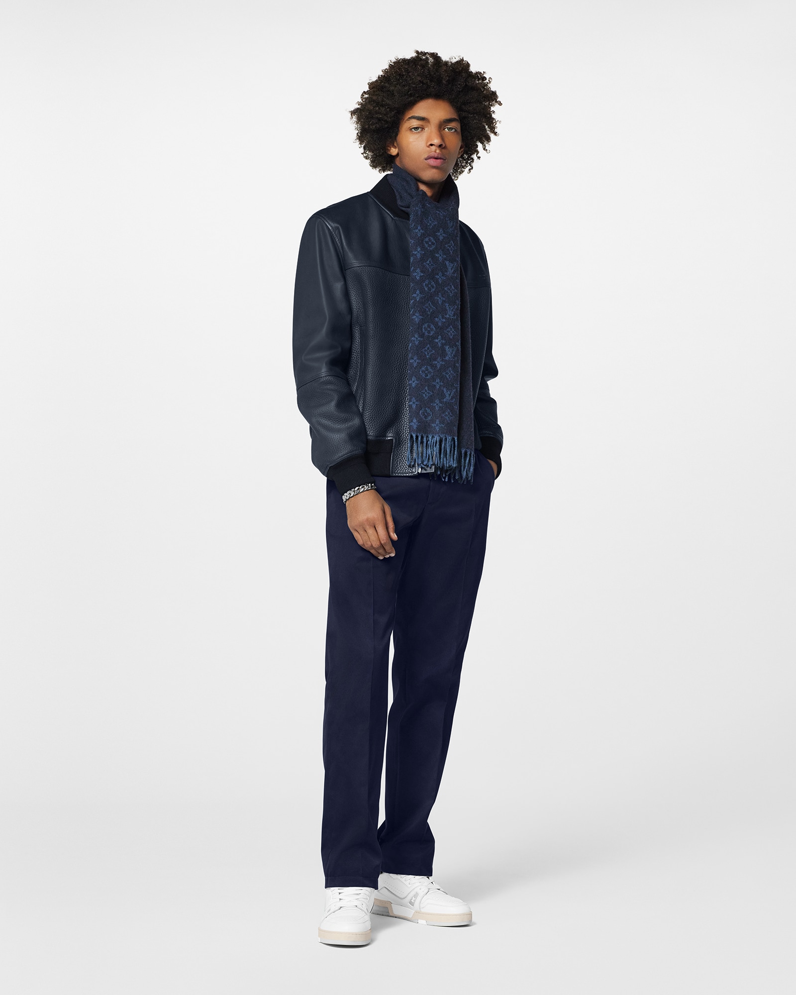A sophisticated accessory for formal looks, this elegant scarf in a soft, luxurious blend of cashmere and wool is woven with a graduated Monogram pattern.