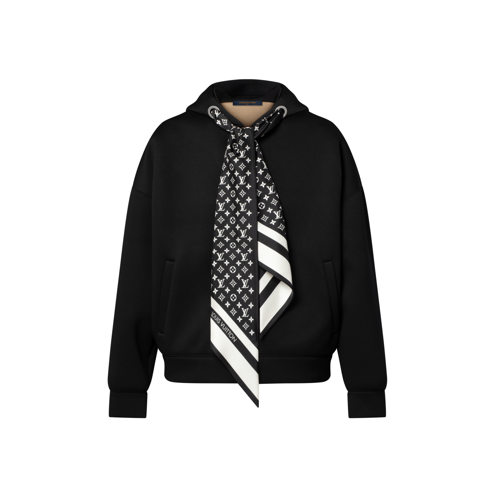 This mini skirt is sporty and chic in an unfussy A-line shape cut from soft double-face jersey. Tonal Monogram silk ties add an elegant signature accent to the waistline, while a Louis Vuitton scarf tag adds a modern House touch to the back pocket.