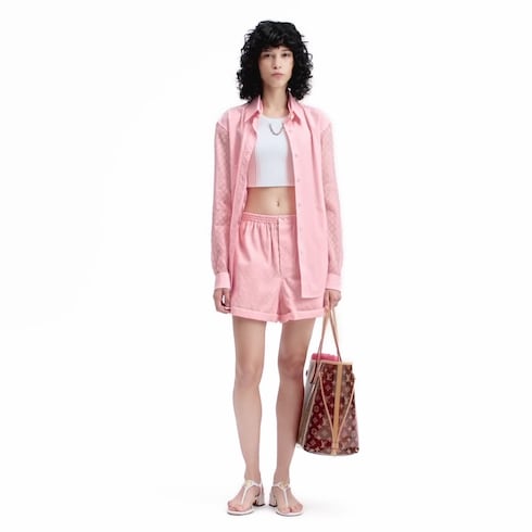 Delicate detailing elevates this classic button-up shirt with a summery signature twist. It is tailored in a regular fit from a refined cotton-silk blend, while the sleeves strike a contrast in a sheer Monogram fil coupé finish. Mother-of-pearl buttons allow the collar to be removed for a streamlined silhouette and the iconic LV Initials are subtly embroidered on the chest.