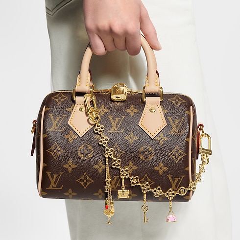The exclusive Petite Malle LV Charm pays tribute to the House’s luggage-making heritage with upbeat contemporary flair. Crafted in gold-colored metal, its playful design features a miniature trunk modeled after the iconic Petite Malle handbag. This finely detailed charm is ideal for personalizing any accessory, from a bag chain or bracelet to a pair of shoes.