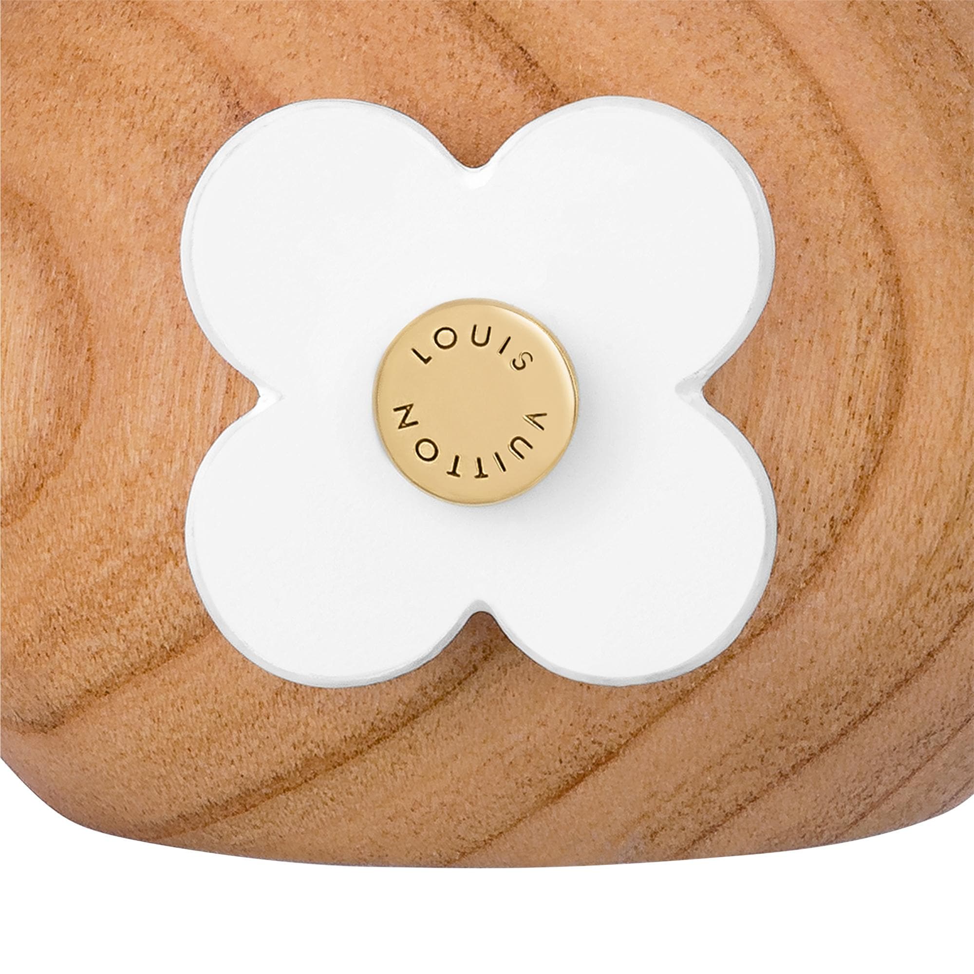The Petula Mini makes a charming gift for children and adults alike. This scaled-down version of the mascot is presented in a soft color palette for the new season. Just like its full-scale counterpart, it is finished with distinguished House emblems including engraved Louis Vuitton studs and Monogram Flowers decorating the eye and tail.