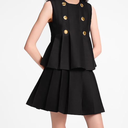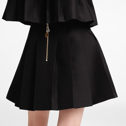 This mini skirt from the runway collection has an elevated preppy look in wool-silk mikado complete with a silk lining. Chunky pleats introduce volume to the silhouette, while the wide waistband is structured with tone-on-tone topstitching. The back is fastened with a gold-toned zipper trimmed with a signature LV Initials pull.