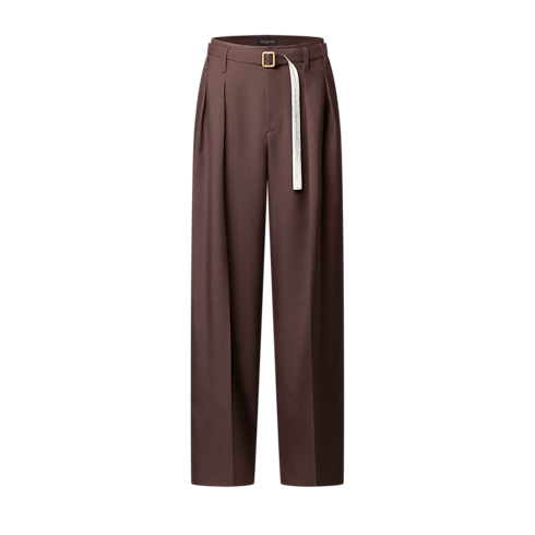 These belted pants, crafted from fine mohair suiting in rich brown tones, embody the effortless elegance of the Spring-Summer 2026 show. Pleats on the front create a fluid silhouette, while signature embroidery adorns a rear pocket. This is an essential piece for completing this season’s timeless looks.