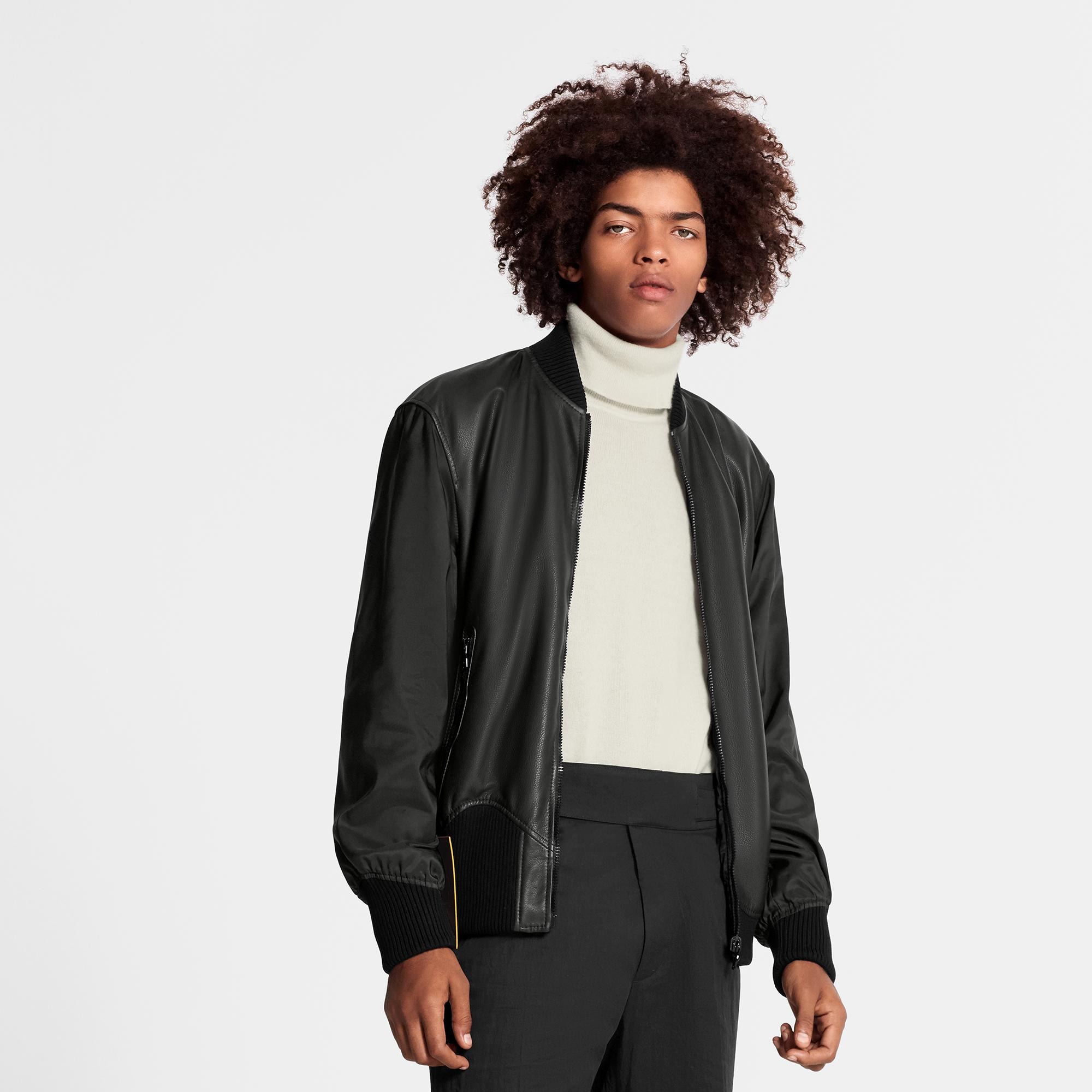 This casual piece twists a classic bomber shape with iconic wavy ribbing, which adorns the cuffs and hem. Crafted from calf leather, the piece can be reversed to reveal an all-over Monogram motif on technical fabric. Sophisticated leather finishing on the pockets and a removable label complete the look.