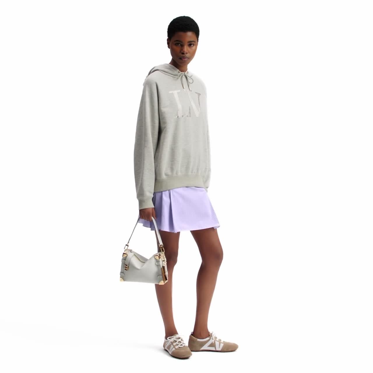 This staple hoodie is elevated with a shimmering signature. It is made from plush fleece-lined cotton jersey in a relaxed fit finished with ribbed hems for cozy, casual wear. The chest is emblazoned with oversized LV Initials picked out in sparkly rhinestones, while golden hardware completes the look with a chic metallic accent.