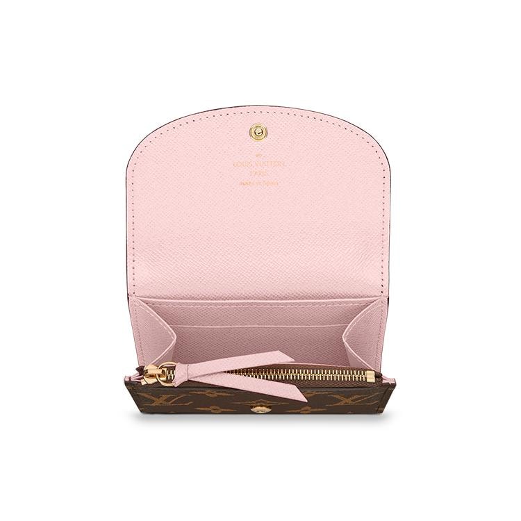 The tiny Rosalie coin purse in Monogram canvas is given a feminine feel by its colorful press-stud and grained-leather lining. For such a compact design, it is surprisingly spacious, containing a gusseted compartment, two card slots and a zipped coin pocket with a leather pull.