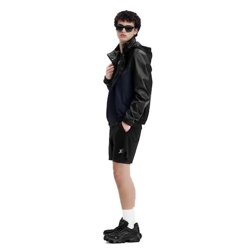 This black running T-shirt combines fashion with functionality. It is constructed from fast-drying, soft and breathable technical fabric with a 4-way stretch for comfort. Sporty gray and white inserts create a flattering color-blocked look, adorned with a reflective LV on the chest. A matching track top and shorts make a coordinated set.