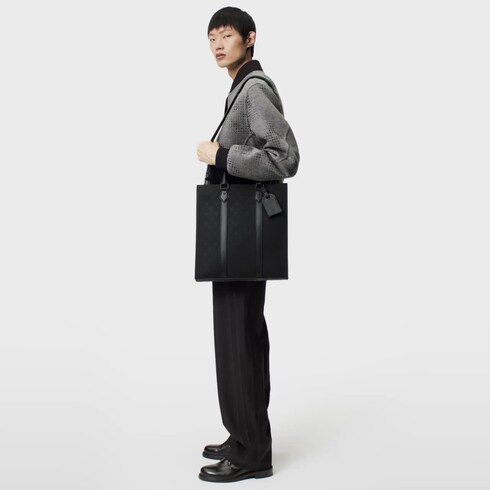 A spacious carryall, the Sac Plat in Monogram-embossed Taurillon leather combines functionality with style. The bag’s straight edges and right angles, leather side bands, and rolled-leather top handles make it eye-catching. A removable and adjustable strap enables shoulder carry. The padded compartment is perfect for a laptop.