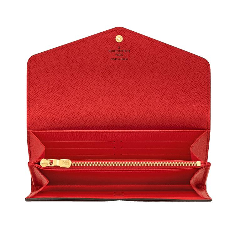 One of Louis Vuitton's classic models, the Sarah wallet combines Monogram canvas with a grained-leather lining. Its elegant envelope-style design conceals a spacious interior with two large compartments, a central zipped coin pocket and multiple card slots. The perfect choice to keep all essentials in one safe place.