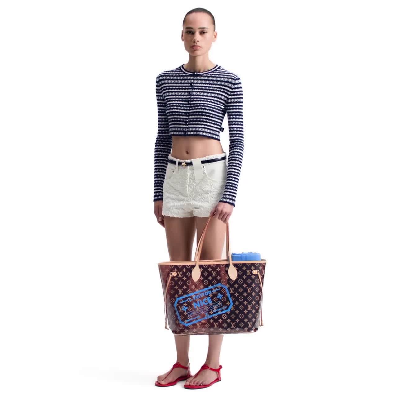 This chic button-up cardigan is crafted in a casual cropped, fitted shape from a flexible wool-blend knit in a graphic scalloped striped finish peppered with Monogram Flower motifs. The cuffs and waistline are playfully finished with scalloped hems, while a signature tab adds a final House touch to the side.