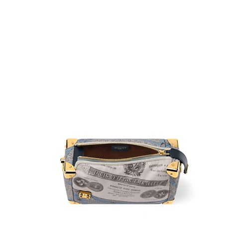 Part of the Inside LV animation, this Side Trunk MM offers a unique take on the original design. Showcasing a plethora of contrasting textiles,inspired by the historical trunk's interior to the Monogram-patterned scarf detail that adorns the handle, this compact style celebrates the very best of Louis Vuitton. It is adorned with gold-toned trunk corners and an iconic S-lock closure, all of which honor the House’s travel heritage.