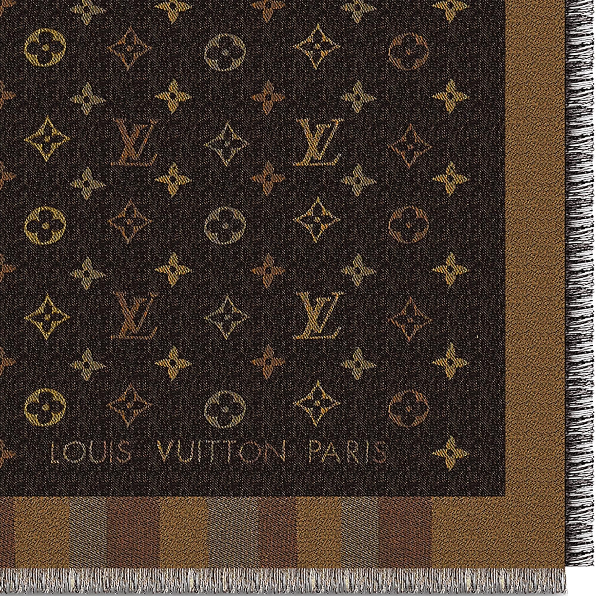 Crafted from a combination of metallic lurex yarns and silk, the So Shine Monogram shawl is completed by the instantly recognizable Louis Vuitton signature. The shimmering golden finish and silk blend provide it with a luxurious aesthetic. This fringed piece is ideal for transitioning from day to night.