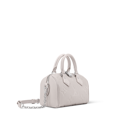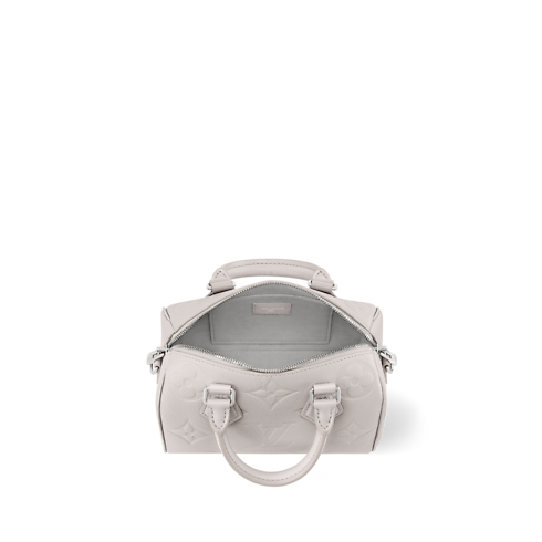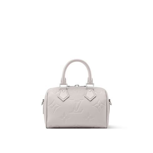This Speedy 20 is updated for the season in a versatile and sophisticated Brume Gray palette. Showcasing the House’s iconic Monogram Empreinte leather, it is adorned with sleek silver-toned hardware including a signature padlock complete with keys. Inside, it is fitted with a flat pocket to keep smaller items organized and also comes with a removable chain and leather strap for multiple carry options.