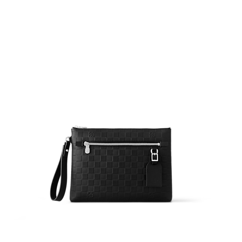 Large enough to hold an iPad, the Takeoff Pouch in cowhide leather is a casual way to transport everyday essentials. This lightweight pouch has a main compartment with two card slots as well as a zipped pocket on the front. It can be carried as a clutch or with its removable wrist strap.