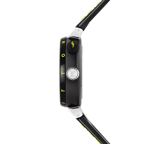 The Tambour Street Diver Chronograph enriches the Street Diver range with an essential complication. The chronograph function underscores the Maison’s pursuit of practicality and readability in the collection, lending these models an even bolder spirit. The Street Diver Neon Black Chronograph features a perfectly-proportioned Tambour case, contrasting finishes and luminescent indexes, for a precision timepiece that will add a sporty, daring allure to any silhouette.