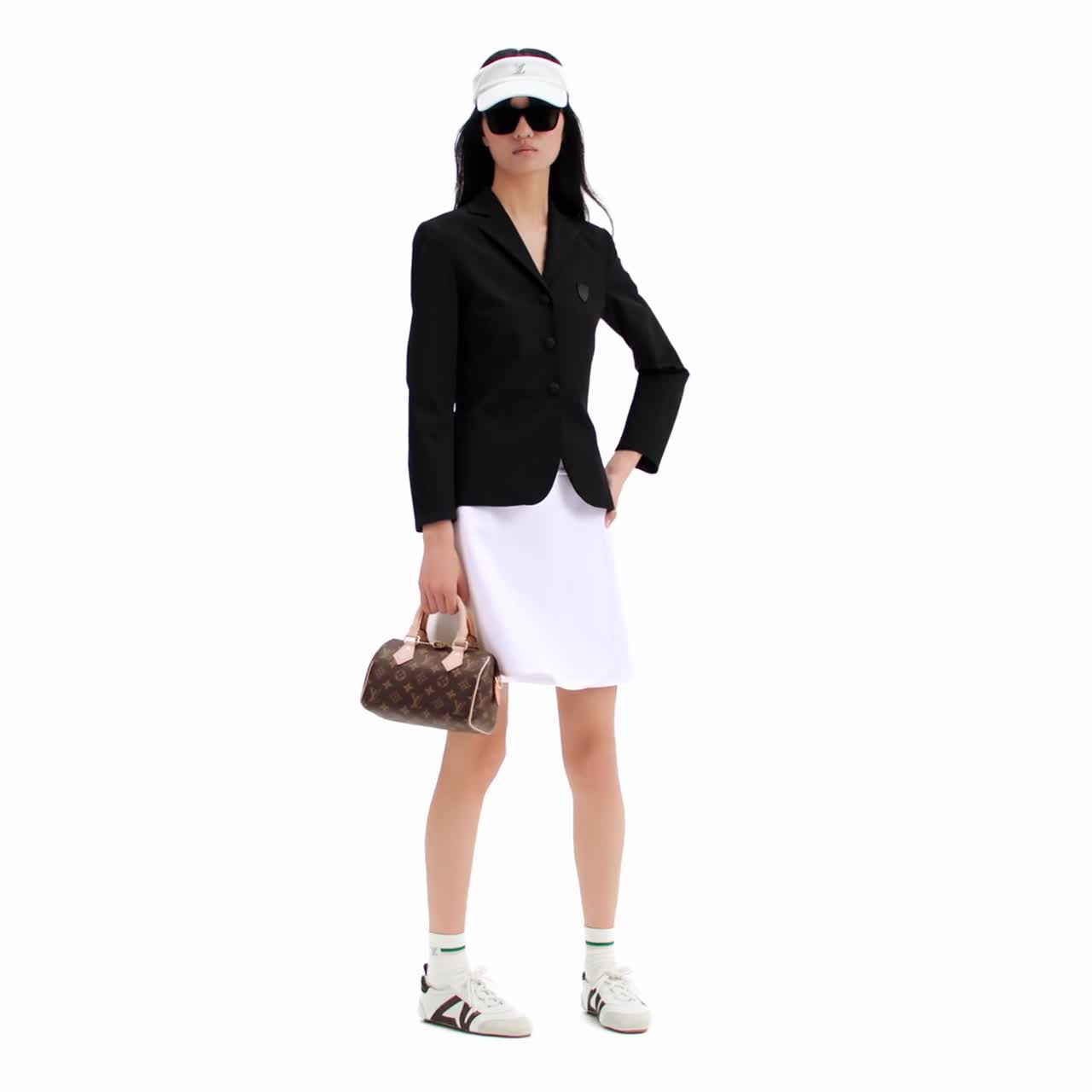 Clean and contemporary, this mini skirt has a fresh, sporty feel in the House’s signature technical jersey. It is cut in a sharp A-line silhouette, which is gently offset by the curved edge of the wrap front. Four golden snap buttons add a chic metallic accent to the waistband.