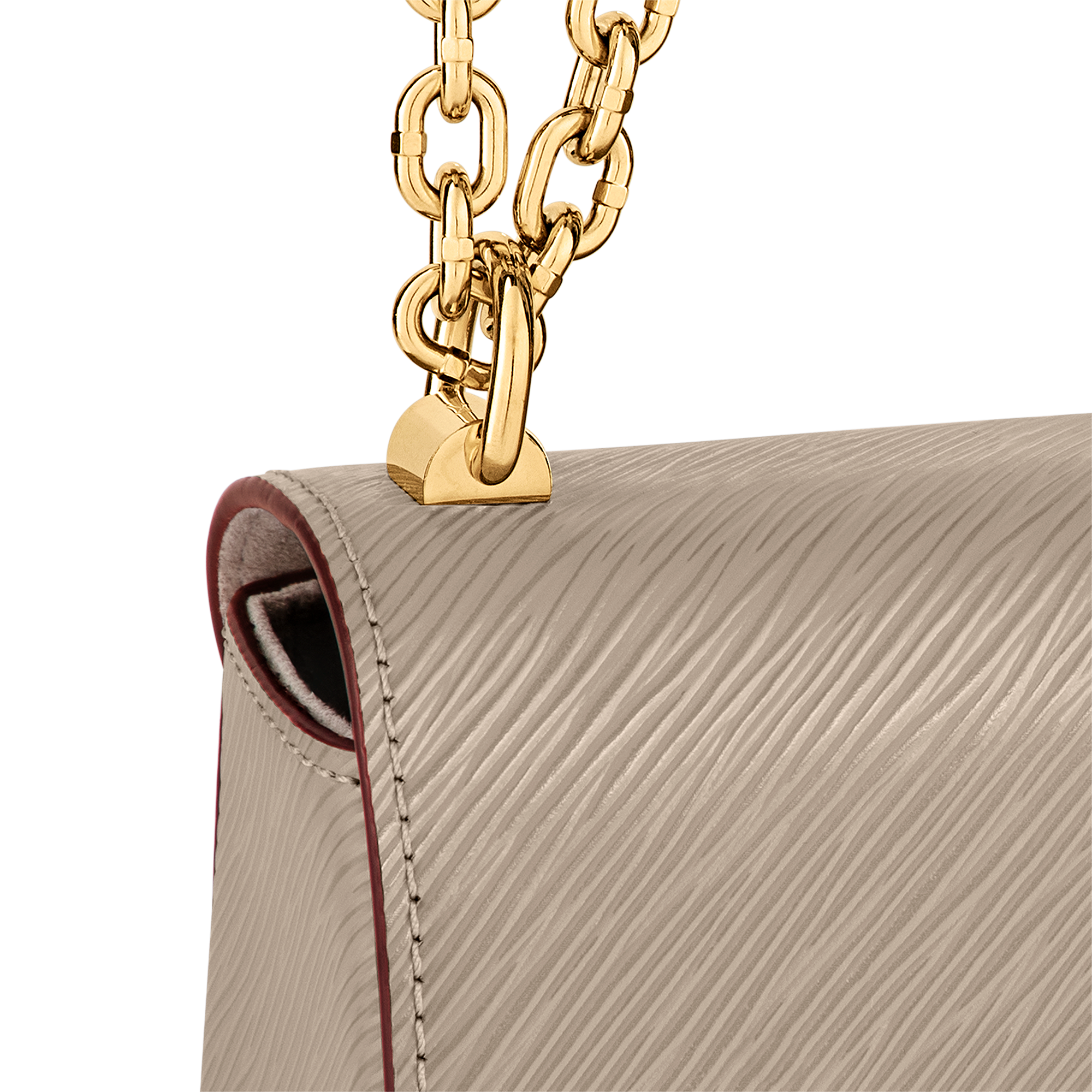 Crafted from the House’s emblematic Epi leather, the Twist MM chain bag features the now-iconic LV Twist lock, a sculptural signature in gleaming golden metal. Unexpectedly roomy thanks to the cleverly designed “wave” base, this beautifully made bag is a fashionable day-to-evening companion. The sliding chain strap can be doubled for shoulder carry or lengthened for cross-body wear. A New Classic of the House, the Twist bag was introduced at the 2015 Cruise show.