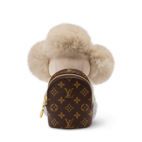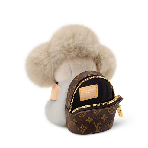 The adorable Vivienne Hug bag charm offers a unique combination of playful appeal and practical utility. The House’s beloved mascot is depicted with soft faux fur with leather arms that wrap securely around a bag handle. This finely detailed charm incorporates a Monogram backpack – perfect for carrying earbuds and other small personal items.