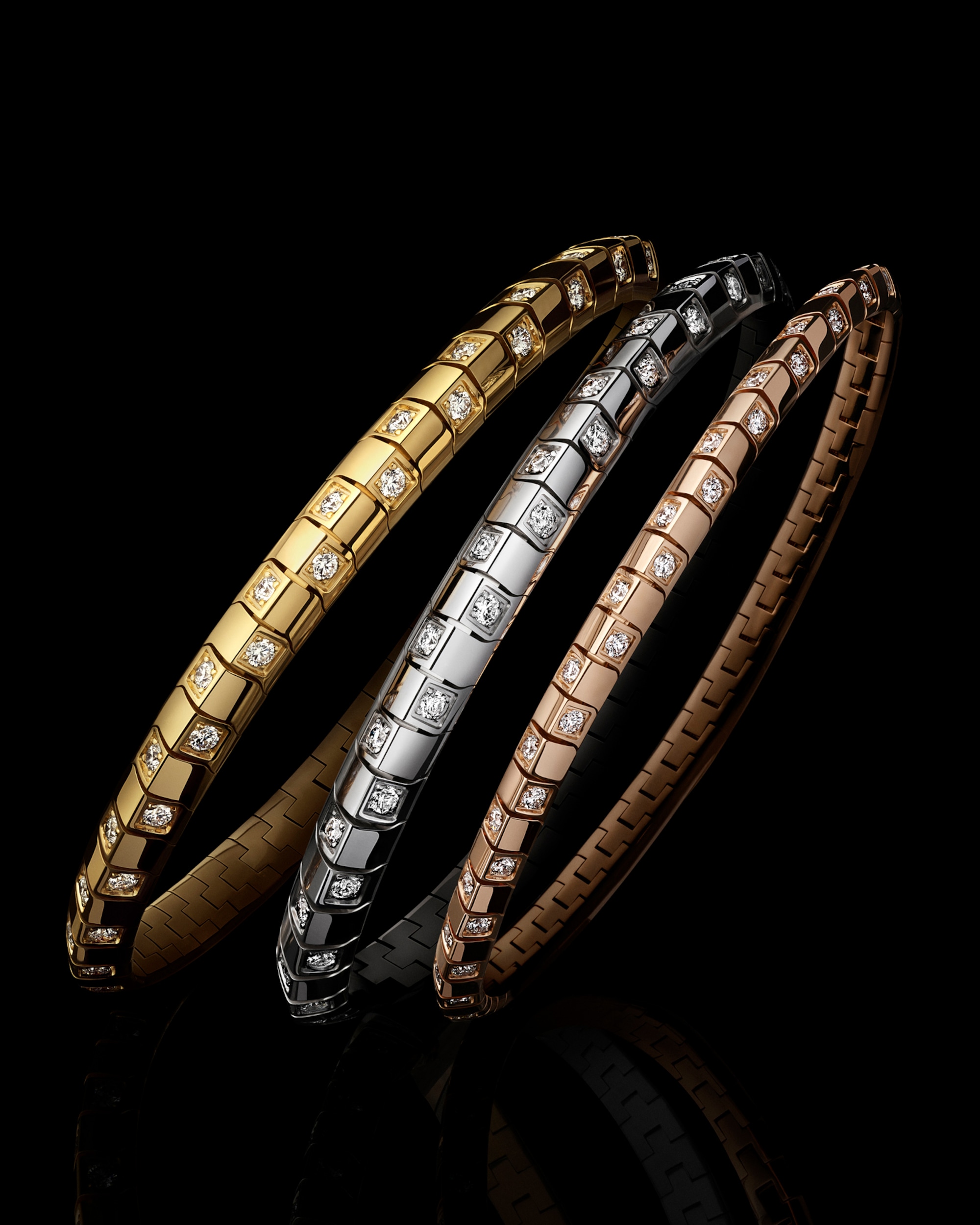 Exuding a pure dynamism, the unisex design is unveiled in three widths in white, yellow, or rose gold for limitless stacking, layering, and styling combinations.