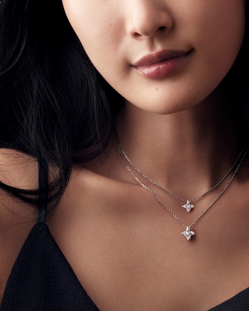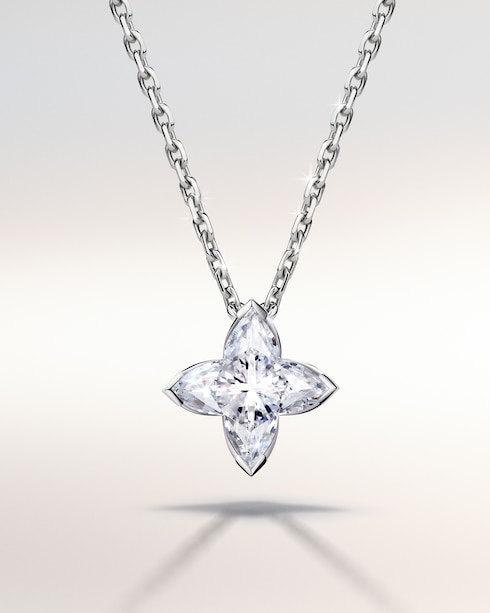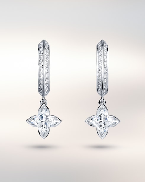 The LV Diamonds pendants and earrings celebrate life’s most precious moments. Inspired by the iconic Monogram Flower, each piece is brought to light through the signature LV Monogram Star cut diamond — its singular radiance capturing the depth of every emotion.