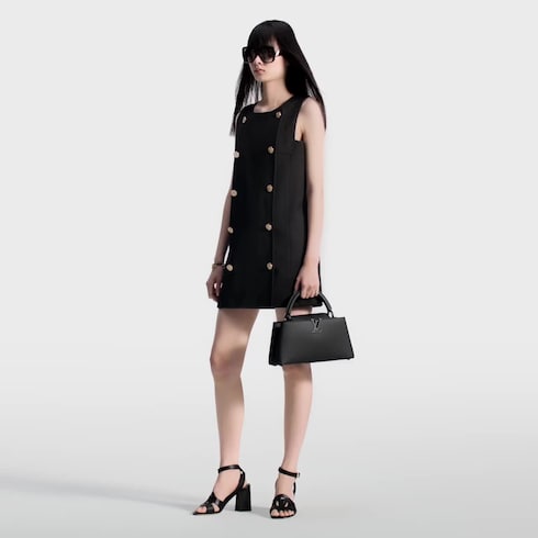 LV Isola sandal yang dibuat dari bahan calf leather lentur melengkapi koleksi ikonis LV Isola. Menampilkan LV Circle signature berukuran besar di bagian atas, desain sandal ini tampak elegan dengan high heel tebal yang juga berlapis kulit. Sandal ini dapat dikencangkan di pergelangan kaki menggunakan tali ramping dengan gesper berwarna emas.